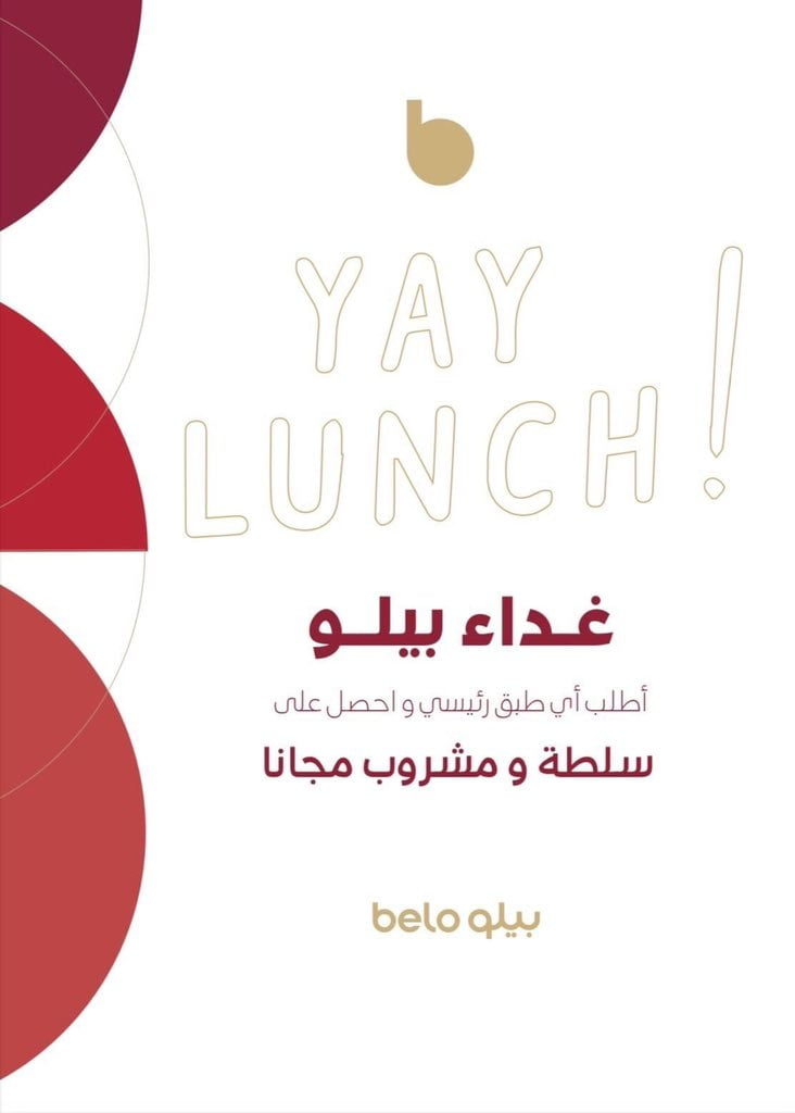 افضل عروض المطاعم في السعودية نستعرضها لكم من خلال عروض مطاعم بيلو الرياض حي القدس طريق الملك عبدالله و تحتوي عروض اليوم علي اشهي و الذ الوجبات الغذائية فترة الغداء من الاحد الى الخميس علي اصناف متنوعة و باقل الاسعار التي تناسب الجميع تابعونا لمعرفة كل جديد عن عروض السعودية من خلال مقعكم عروض توداي .