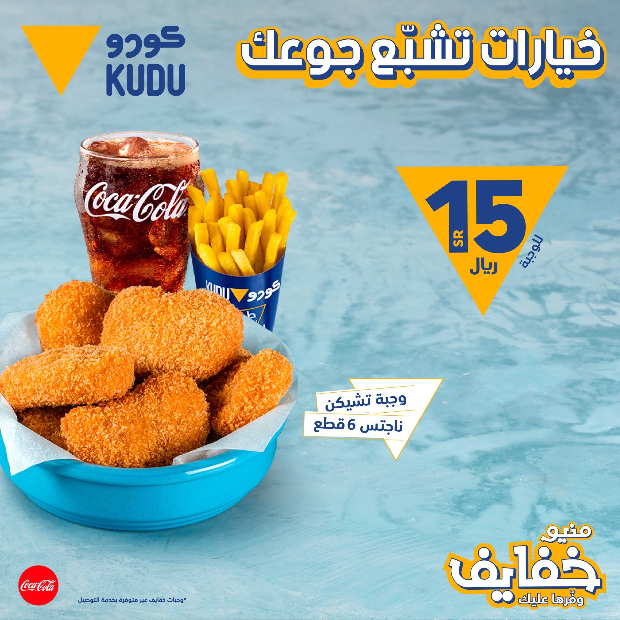 احدث عروض المطاعم نستعرضها لكم من خلال عروض مطعم كودو السعودية و الذي يعتبر من افضل العروض في المملكة و يحتوي عروض اليوم علي افضل العروض لا تفوت عليك وجبة تشيكن ناجتس بـ 15 ريال شرفنا في اي فرع من فروع مطعم كودو تابعونا لمعرفة كل جديد عن عروض السعودية و عروض رمضان 2022