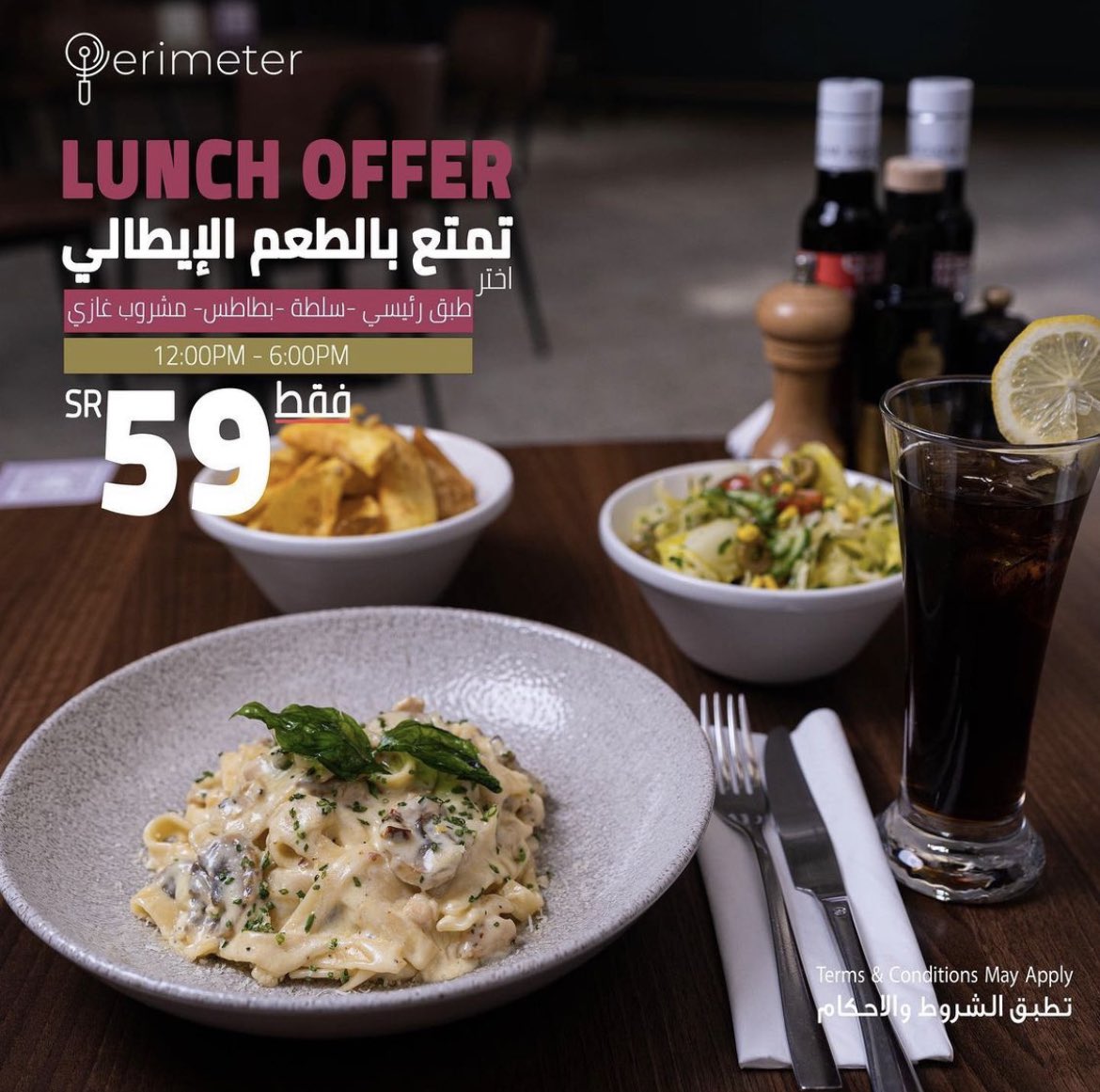 - طبق رئيسي – سلطة – بطاطس – مشروب – فقط بـ 60 ريال سعودي