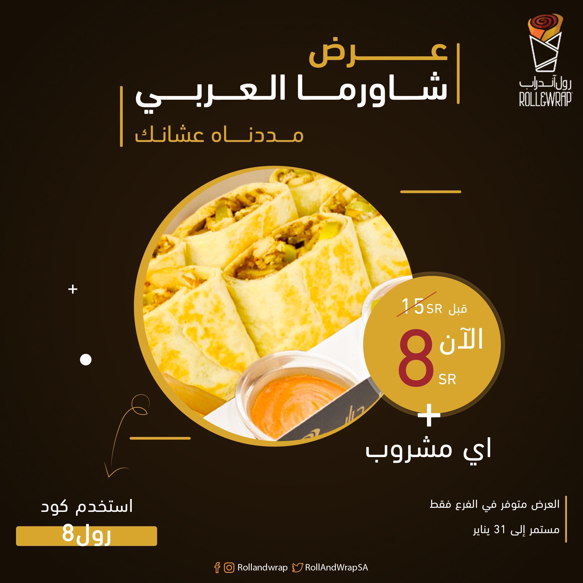 عروض مطعم رول آند راب اليوم و نستعرض لكم من خلاله افضل العروض علي شاورما العربي و باقل الاسعار ايضا بالاضافة الي اي مشروب بـ 8 ريال سعودي فقط و العرض متوفر في الفرع فقط حتي نهاية شهر يناير 2022 و يمكنك استخدام كود خصم ( رول8) افضل عروض مطاعم السعودية نوفرها لكم باستمرار علي موقعكم عروض توداي و ابقو معنا لمعرفة كل جديد عن عروض و تخفيضات رمضان 1443 هـ و يوم التأسيس السعودي .