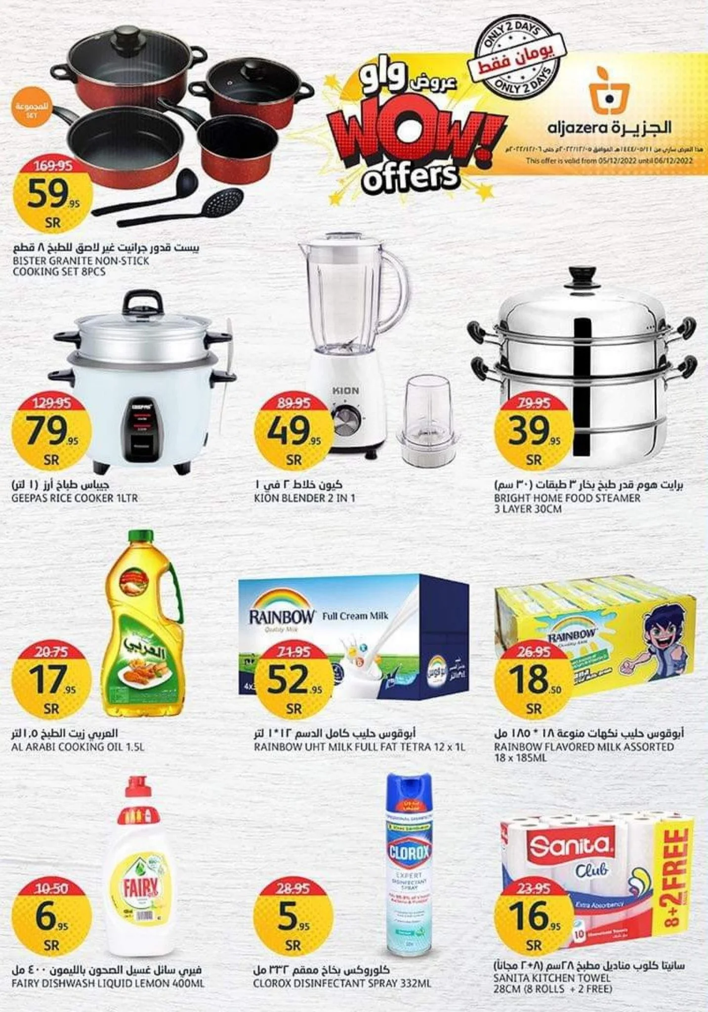عروض اسواق الجزيرة الإثنين 5-12-2022 – اقوي المنتجات الغذائية و الخضورات و منتجات اللحوم تجدونها في عروض اسواق الجزيرة والتي تقدم لكم بارخص الاسعار التي تناسب الجميع كما تحتوي علي عروض الادوات المنزلية و الاجهزة الكهربائية في عروض اسواق الجزيرة الإثنين 11 جمادى الأولى 1444هـ الموافق 5-ديسمبر-2022م تابعونا لمعرفة كل جديد .