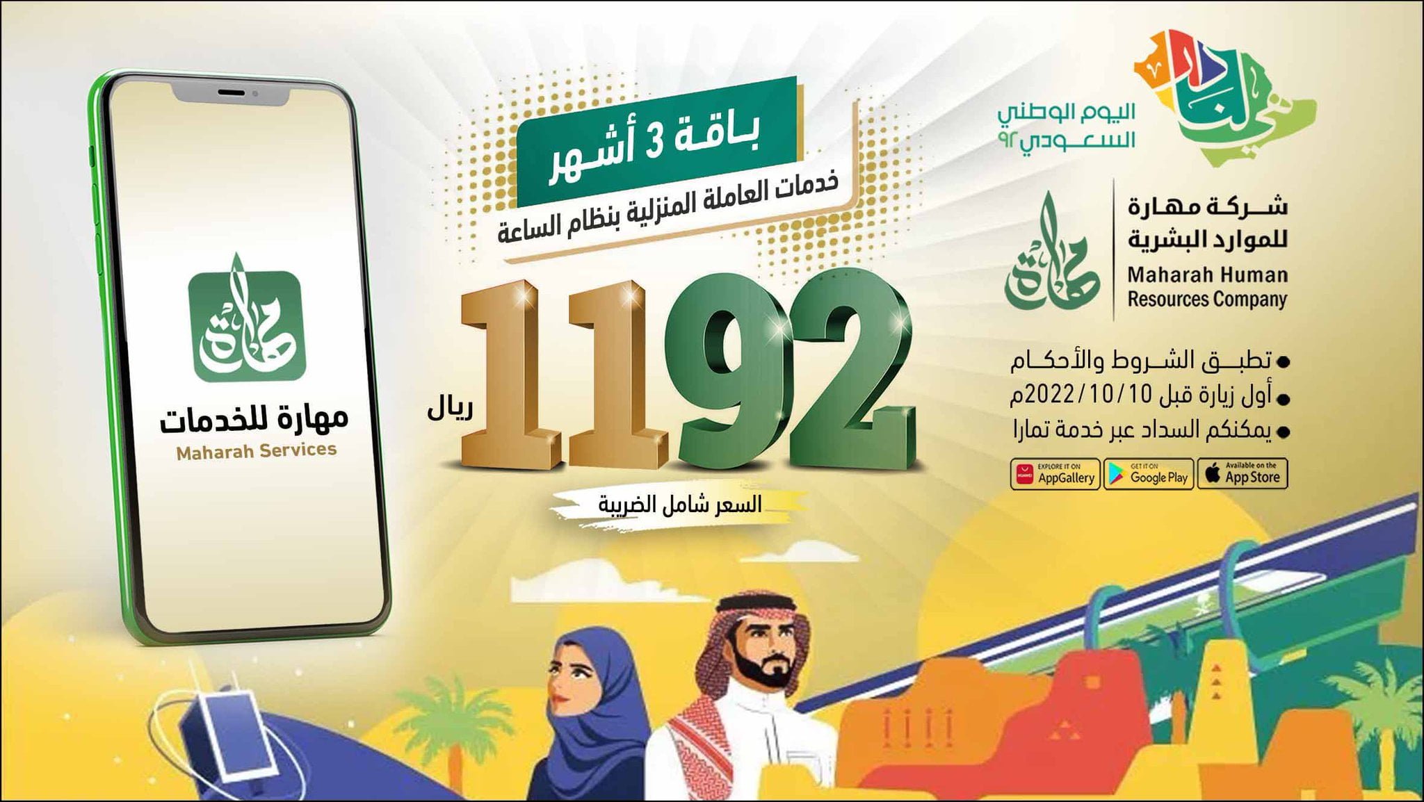 عروض اليوم الوطني 2022 نستعرضها لكم اليوم من خلال عروض مهارة للموارد البشرية و تحتوي عروض اليوم علي اقوى الخصومات التي تمشل علي لخدمات العاملة المنزلية بنظام الساعة و يقدمها لكم و بارخص الاسعار التي تناسب الجميع في عروض مهارة للموارد البشرية اليوم تابعونا علي موقع عروض توداي لمعرفة كل جديد عن عروض اليوم الوطني السعودي 92 .