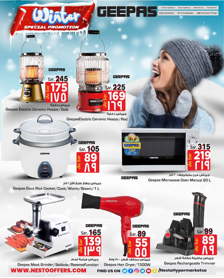 نستعرض معكم اليوم عروض نستو الرياض الإثنين 1 ربيع الثاني 1442هـ الموافق 16-نوفمبر-2020م نقدم لكم افضل العروض المختلفة علي الكثير من االاجهزة الكهربائية الخاصة بالشتاء و اجهزة التدفئة المختلفة بالعروض الاسبوعية في عروض نستو الرياض اليوم الإثنين 16-نوفمبر-2020م لتي تتميز ايضا بتوفير كل ماهو جديد .
