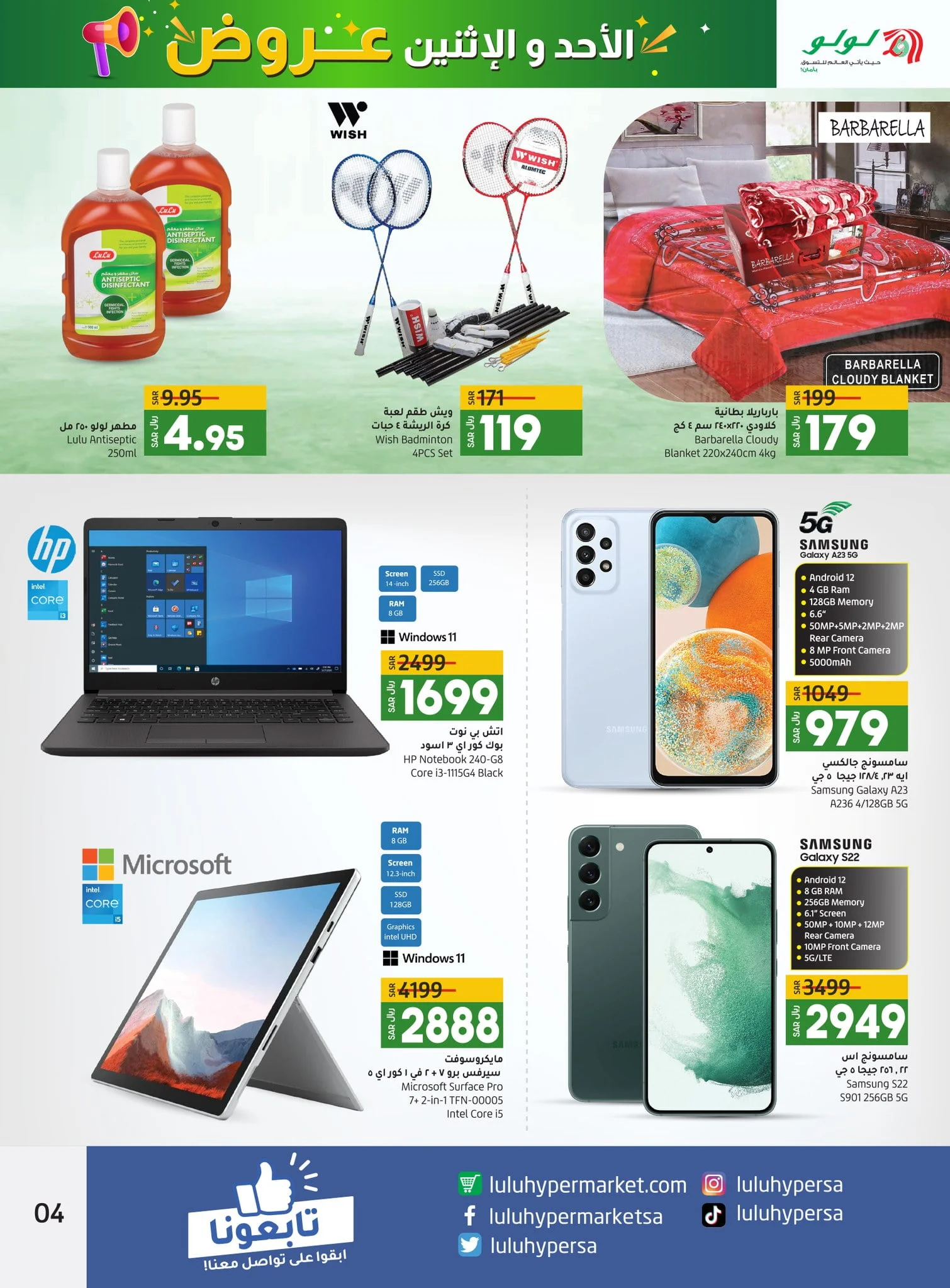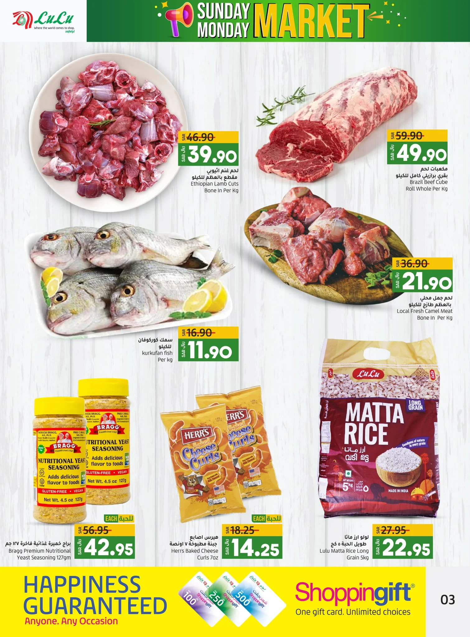 تحتوي عروض لولو الرياض اليوم علي :المراعي الخضراء , شاي هالي كيس , ريو ماري , زيت شعر دابر , جيشا لحم تونا , شيبس ليز خل وملح , جبن بريزيدن , قهوة سيتي كافية , عصير برتقال , حدائق ,حدائق , حدائق , صابون ديتول , جهاز غسيل , ماء عطر , جلي فوستر , شاي ابو جبل , صابون بالموليف , مرتديلا دجاج , فوط صحية كوتكس ,