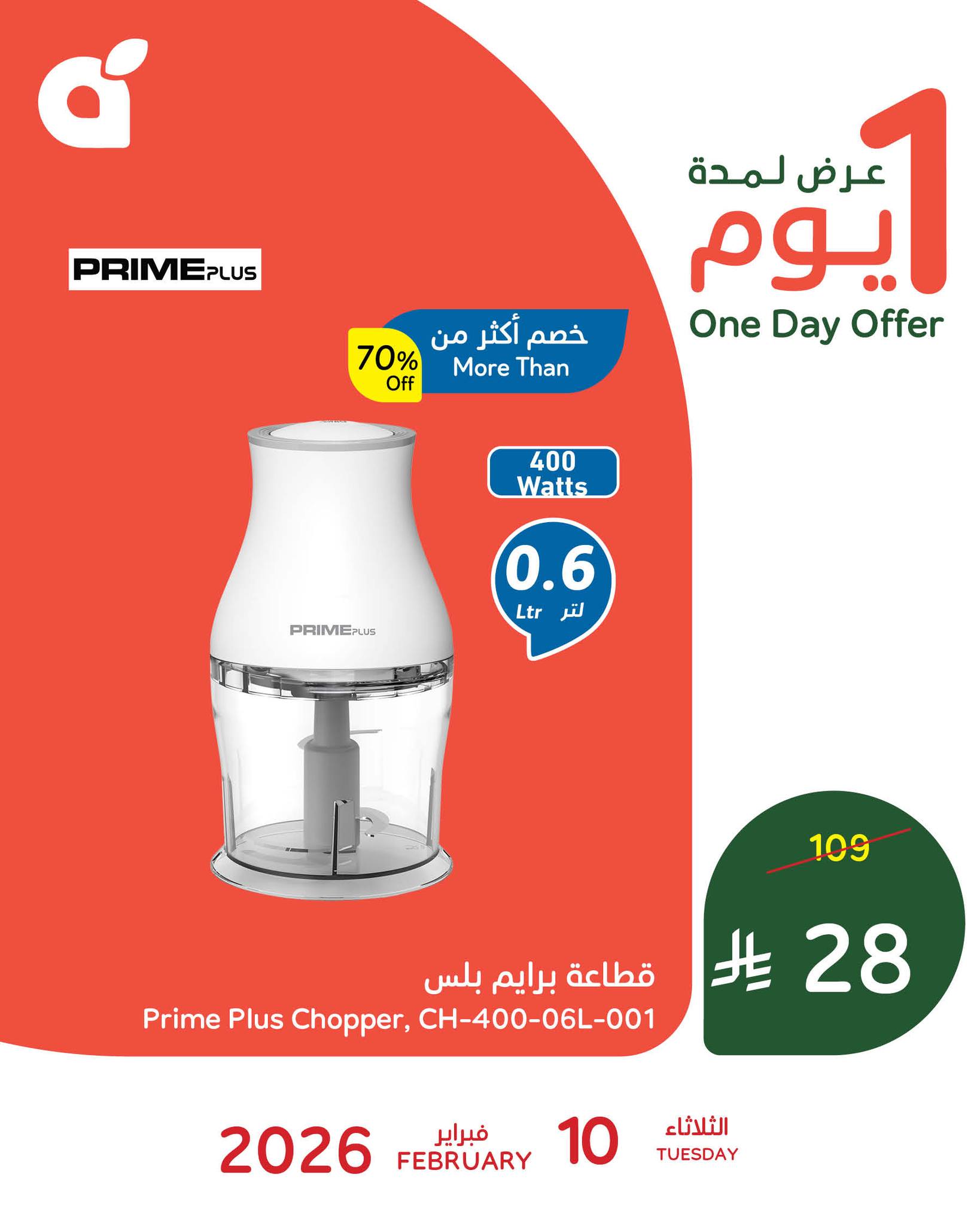 نقدم لكم اليوم احدث عروض بنده الثلاثاء 10 فبراير 2026 الموافق 22 شعبان 1447هـ و تحتوي علي افضل و اقوي الاجهزة المنزلية و خاصة اجهزة اساسية للمطبخ منها القلاية الرقمية و قطاعة برايم في عرض حصري متاح اليوم فقط باكثر من نصف السعر .