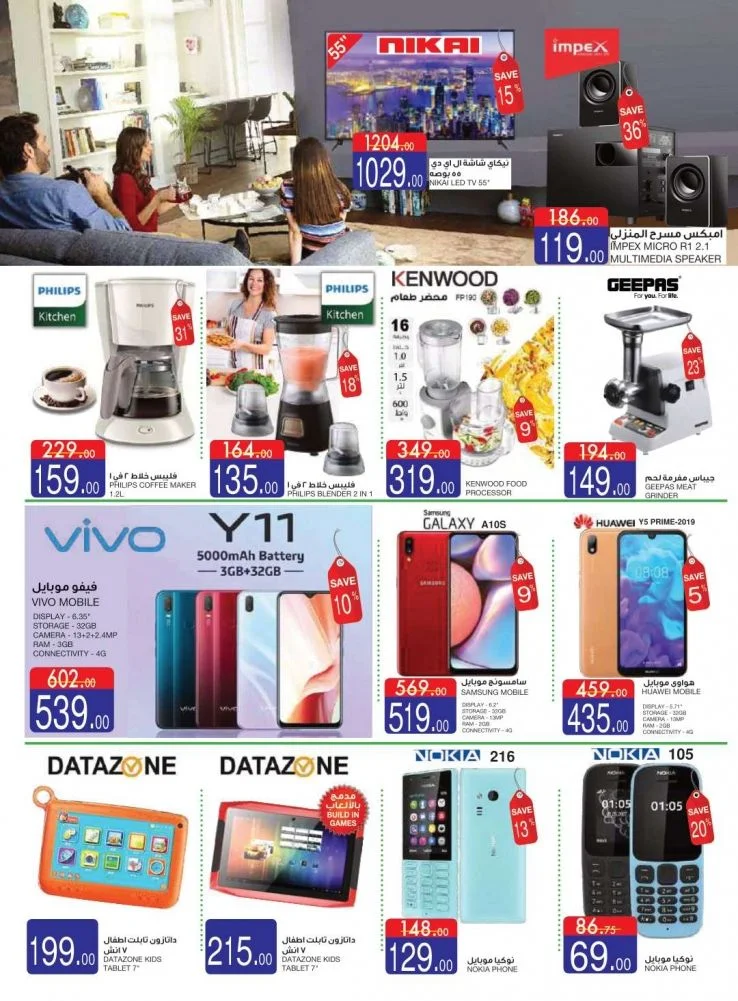 شواية و صانع النسدوتشات – فرن كهربائي مع شواية – كبة و قطاعة – خلاط يدوي 750 واط – ميكروويف فرن 36 لتر – سخان دماسة – مقلاة بدون زيت – محضر طعام دبل فورس – هاند بلندر – خلاط سوبر بلندر – غلاية كهربائية 2.400 واط – خلاط يدوي مالت يكويك – مضرب كهربائي لصنع الفوم بالمشروبات – خلاط كهربائي 500 وات – خلاط توريندر كهربائي 2 مطحنة – ثلاجة مني بار- ساندوتش ميكر 7 في واحد – خلاط يدوي مالتي 1 – 450 واط – ثلاجة بفريزي علوي – بوتجاز مسطح غاز – غلاية كهربائية زجاجية .