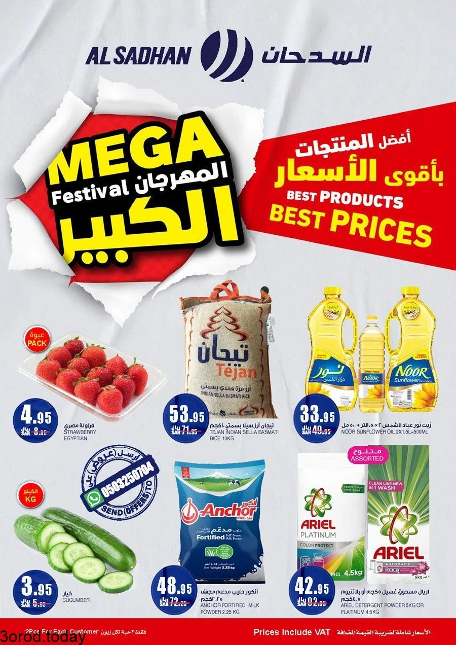 نقدم لكم اليوم اقوي عروض السدحان ليوم الأربعاء 19 ربيع الثاني 1443هـ الموافق 24-نوفمبر-2021مو التي تضم اليوم علي متنوع من المنتجات الغذائية والفواكه الطازجة و الخضروات ونواصل عرضها لكم اليوم من خلال عروض السدحان بارخص الاسعار التي تناسب الفئات فقط في عروض السدحان اليوم الأربعاء 24-1-2021 تابعونا لمعرفة كل جديد عن عروض السعودية .